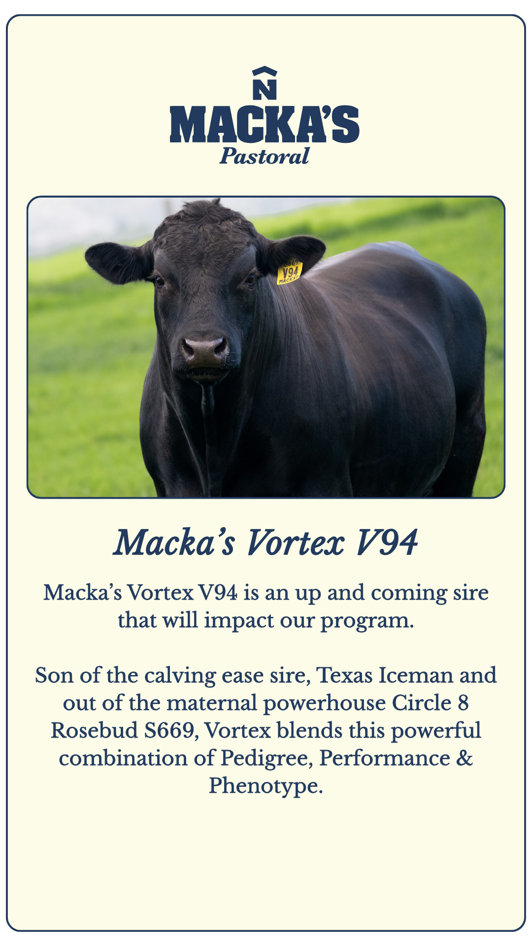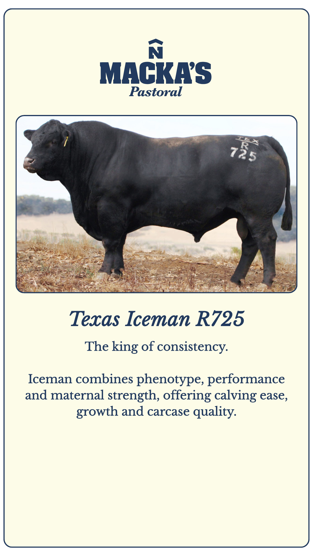 A key highlight of the 2026 Autumn Commercial Female Sale is our Preg-Tested Heifers in calf to Macka’s Vortex, a son of Texas Iceman. Vortex combines structural soundness, balance and strong performance data, backed by the proven maternal strength of his dam, Rosebud, who now has over 50 progeny on the ground.